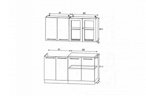 | Глубина верхних шкафов (мм) | 300 |
