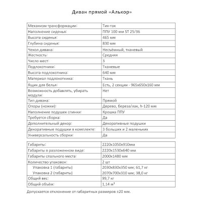 Диван Алькор (Аквилон) продается в интернет-магазине mebel-vo-vladimire.ru по цене 63 963 руб. Есть доставка по Владимиру и Владимирской области. Возможность подъема на этаж и сборки уточняйте у менеджера по телефону 8(800)505-27-11.