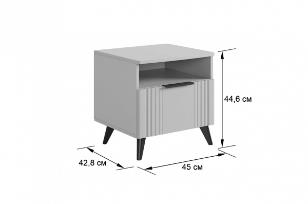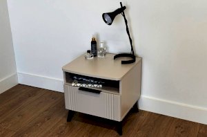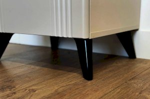 Благодаря компактным размерам тумба легко впишется в любой интерьер и гармонично сочетается с другими модулями спальни «Катрин». Выкатной ящик на шариковых направляющих обеспечивает удобный доступ к вещам, а нерегулируемые пластиковые опоры гарантируют стабильность конструкции.